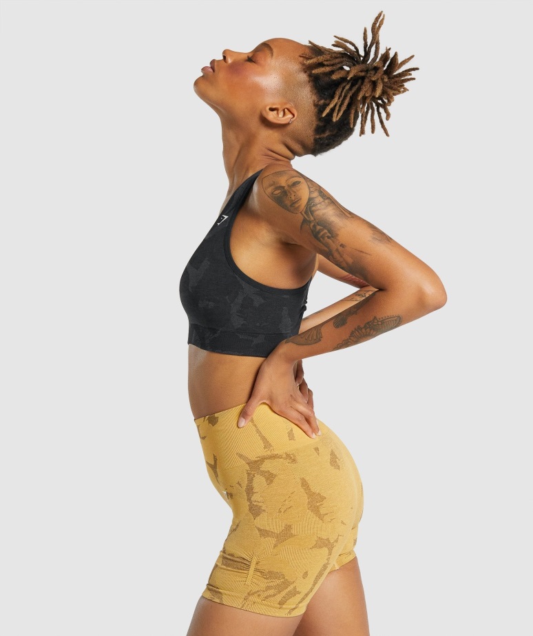 dokončajte Svojo Zadnjo Vadbeno Misijo In Svojo Najnovejšo Obleko V Prilagojenem Brezšivnem športnem Modrčku Za Dirkače. Ostanite Hladni V Dirkalnem Dizajnu In Elegantni V Naborkanem Sprednjem Delu. Vse To V Osveženem Kamuflažnem žakardu In Značilnem Brezšivnem Materialu Bo Zagotovo Pripeljalo Do Vaše Najboljše Vadbe Doslej.